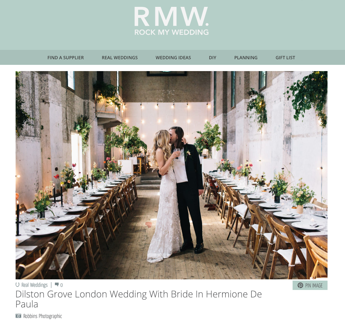 Jammie & Annabel’s Dilston Grove wedding featured on Rock My Wedding. See the post HERE.